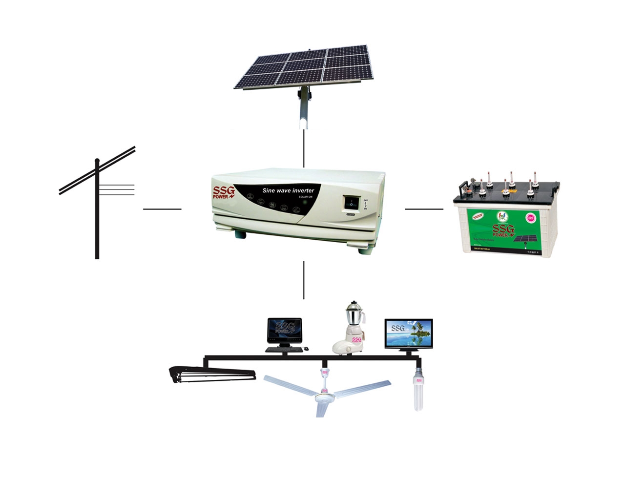 | Packages | Solar Panel 100W, Solar Inverter 800W, Tubular Battery 100Ah |